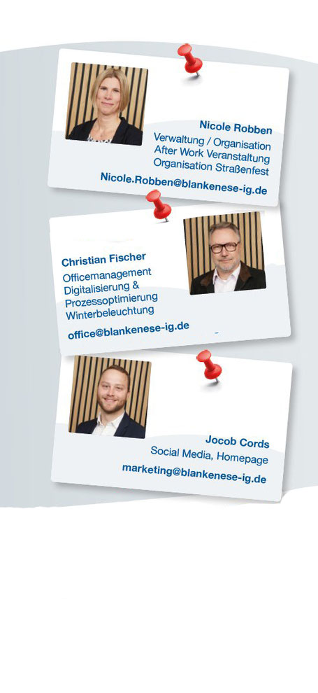 Wir planen Aktionen und Veranstaltungen, vernetzen das Quartier, kümmern uns um die Sauberkeit und wollen zur Weihnachtszeit den Blankeneser Ortskern festlich erstrahlen lassen. Aber auch Mitarbeit und Einflussnahme auf behördliche Planungen und Vorhaben, sind wichtiger Bestandteil unserer Arbeit. Ebenso vielfältig wie der Blankeneser Ortskern sind die Anforderungen, denen sich die Blankenese Interessen-Gemeinschaft e.V. tagtäglich stellen muss. Wir mischen uns ein und auch gerne mit, wenn es um die Belange unsers Standorts geht. Die BLANKENESE Interessen-Gemeinschaft e.V. ist für Ihre Wünsche und Anliegen da.